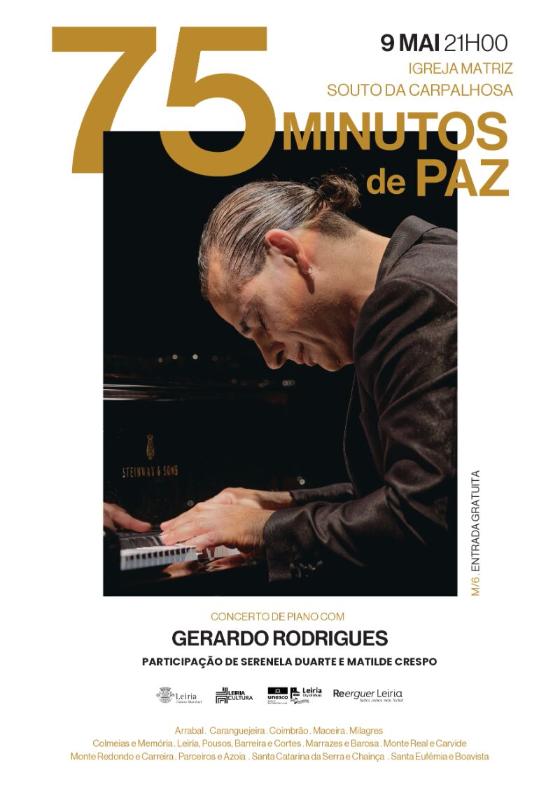 O Município de Leiria, em estreita articulação com as Juntas e Uniões de Freguesia, promove ao longo dos meses de maio e junho o ciclo de concertos solidários “75 Minutos de Paz”, uma iniciativa cultural de proximidade que coloca a música ao serviço das pessoas e do território.