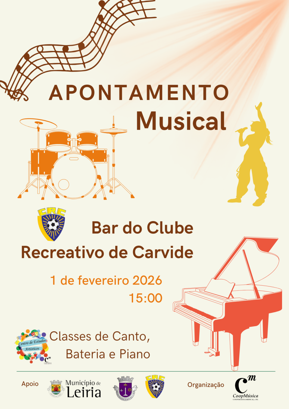 No domingo dia 1 de fevereiro, pelas 15h, os alunos do Centro de Estudos Artísticos irão proporcionar uma tarde diferente, apresentando o que vêm aprendendo a nível musical.