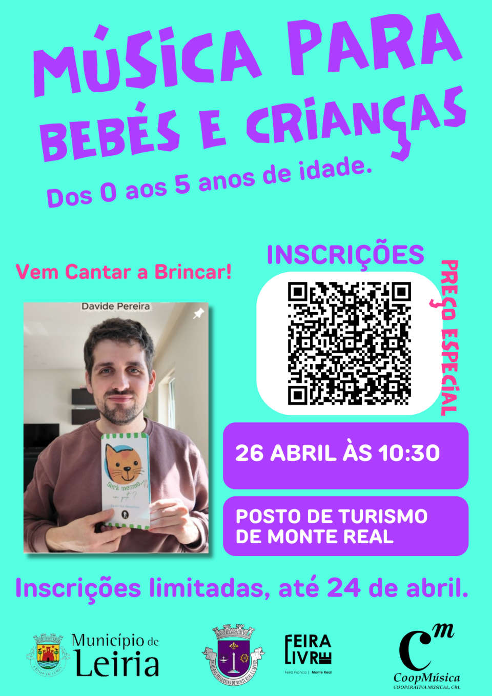 A sessão musical será dinamizada por Davide Pereira, do projeto "Cantar a Brincar" e está integrada na programação mensal que a CoopMúsica desenvolve a fim de dinamizar a região a norte de Leiria, com atividades culturais para os mais novos.