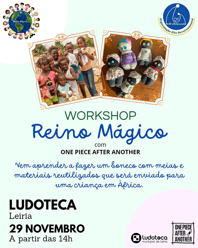 O Reino Mágico Mães do Mundo nasceu em 2020 e a missão é, através do voluntariado, levar sorrisos a crianças em África, com bonecos feitos de meias e materiais reutilizados. Já enviou mais de 20 mil bonecos para países PALOP, Quénia, Marrocos, etc.
