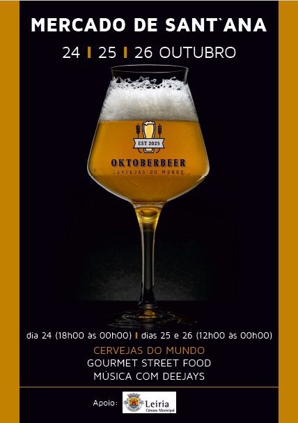Nos dias 24, 25 e 26 de outubro de 2025, o Mercado de Sant’Ana, em Leiria, transforma-se no palco da primeira edição do festival Oktoberbeer: Cervejas do Mundo, um evento que promete reunir amantes da boa cerveja, da gastronomia e da música num ambiente único.